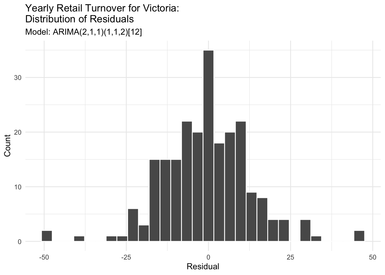 Following what was presented at the two-day workshop, this third post (part two of day two) will be “everything that is forecasting”. The second day focused on how to use the the tidyverts packages in forecasting. Due to the length of the material covered in the second day, it has been split into two posts. The first part covered modeling algorithms. This post will finish up modeling algorithms and cover model diagnostics and forecast accuracy.