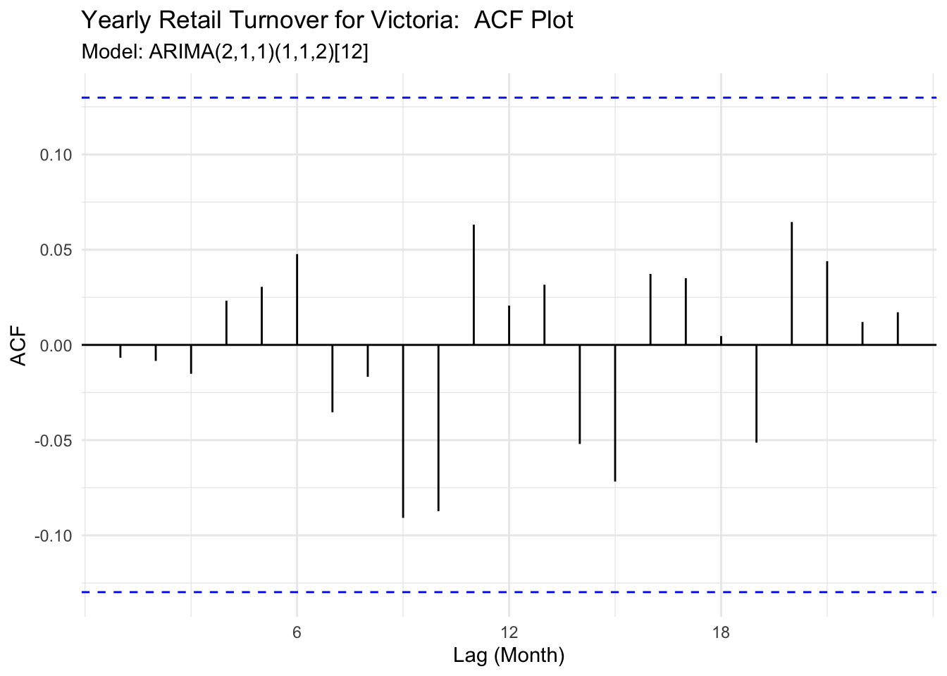 title = "Yearly Retail Turnover for Victoria: ACF Plot",